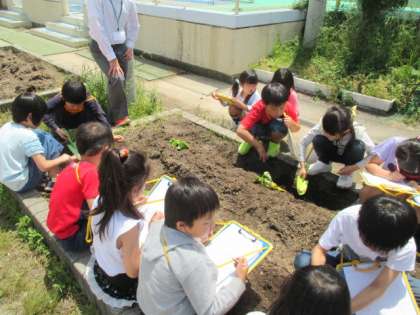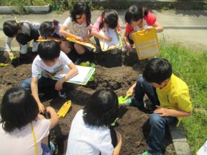さつもいもを植えました。秋には,さつまいもパーティをする予定です。水やりを大切にしてほしいです。