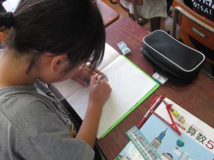 今日は合同な図形のかき方を3種類しりました。コンパスや分度器を使ってかきます。お家で子どもたちが困っていたら「長さをはかる」「角度をはかる」「コンパスを使って半円同士を交わらせる」などのポイント伝えてあげてください。