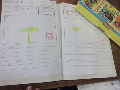 観察カードと写真を見ながら