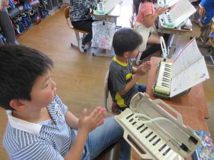 新しく出てきた付点八分音符のリズムを,手を叩くことで理解しました。
