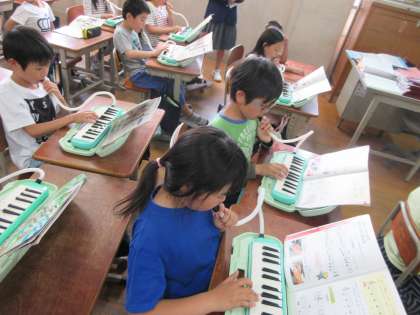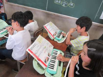 鍵盤ハーモニカの指使い。