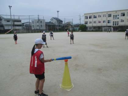 初めてバットを振る子や野球が好きでよく知っている子がいます。技術や知識がバラバラの子どもたちがどのようにして学習していくのか楽しみです。