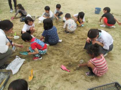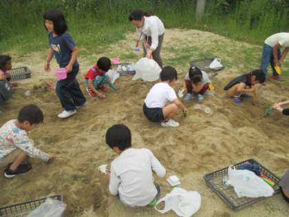 図工の学習です。土にどんどんさわって,思いつくまま,土遊びをしました。山を作ったり,トンネルを作ったり,さまざまです。子どもたちの発想力を伸ばしていきたいものです。