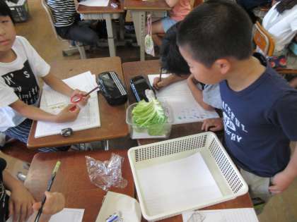 モンシロチョウの幼虫が,段々大きくなってきたので観察をしました。