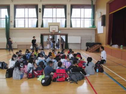 6年生が大変楽しみにしていた修学旅行にいよいよ出発です。お天気が心配ですが,子どもたちは笑顔が晴れマーク。出発式で,修学旅行での約束を確認し,元気に出発していきました。思う存分楽しんできてほしいと思います。