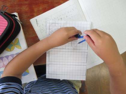 中心を探すことに苦労しましたが,きれいなもようが出来上がると子ども達はとても嬉しそうでした。