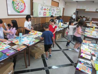 たくさんの本があるので,みんなで楽しみながら選びました。