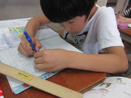 コンパスで長さを写し取る活動をしました。