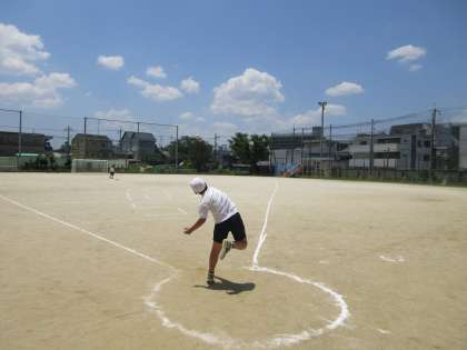 記録を少しでも伸ばすため,体の動きを考えながら投げました。