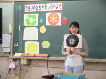 野菜の断面図から,何の野菜かをあてるクイズをしました。