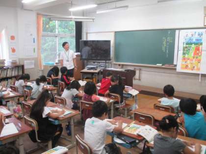 2年生の国語です。かたかなの言葉を使って,文章を作りました。子どもらしい文章がたくさん出ました。