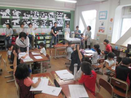 生活科の学習です。町たんけんでインタビューをするので,その練習をしました。練習相手は,参観に来てくださった保護者のみなさまでした。子どもたちは,本当にうれしそうでした。ご協力ありがとうございました。