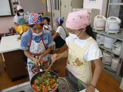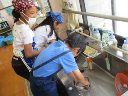 6年生初めての調理実習がありました。やさいの切り方はいろいろでしたが,自分たちで作った野菜炒めはおいしかったようです。片付けまでしっかり取り組める姿はさすがでした。