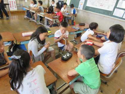 二人一組となって,一人が話し手,もう一人が聞き手となって話をする活動をしました。