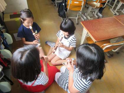 5時間目がリコーダーテストなので練習中。友だちと一緒に演奏することで自信につながるようです。