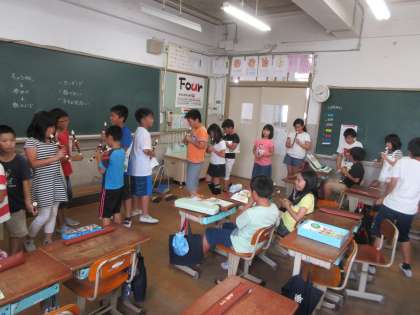 「子どもの世界」の1フレーズのリコーダーテストをしました。合格できると思ったら担任に聞いてもらいます。合格までには,色々な意味で長い道のりが・・・