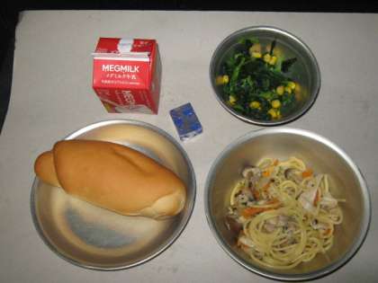 きのこの苦手な児童も多いのですが,好きなスパゲティの中なのでよく食べていました。ほうれん草のソティもコーンの甘さとほうれん草があっていて,子どもたちに人気のある献立です。