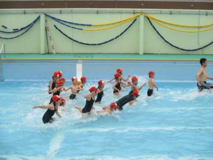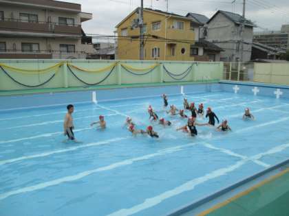水泳の時間です。今日は,まだ水慣れの時間です。50CMの水位です。子どもたちは久しぶりのプールに大はしゃぎです。楽しい時間でした。