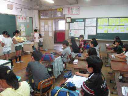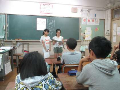 今日は図書係さんが朝の読み聞かせをしてくれました。子どもたちは楽しそうに聞いていました。