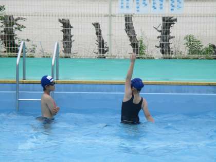 今日から高学年も水泳学習スタートです。ペアで教え合い,練習に励む姿を見ることができました。