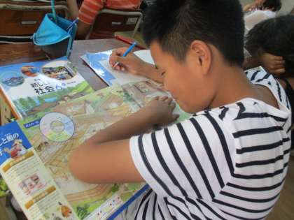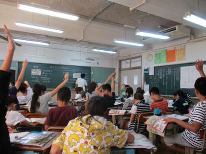 社会科では貴族と武士の暮らしを比べていました。熱心に資料を調べたり,考えを発表したり,活気のある授業です。たくさん手が挙がっています。