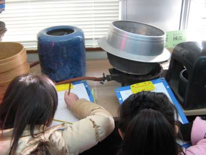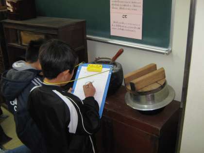虫かごも木で出来ていたのを見て,「プラスチックではないんだね。」と気づいていました。展示してある物の中には,プラスチック製の物が一つもありませんでした。