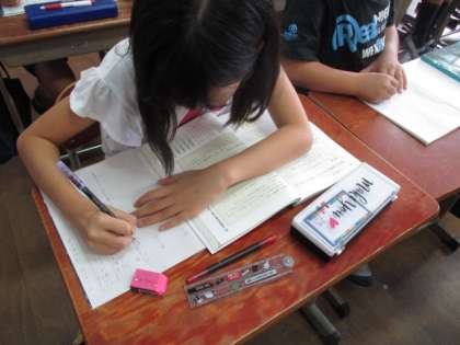 国語科では夏休み前最後にクラブ活動の活動報告書を制作します。これまでの活動を振り返り次につなげるために自分がすることを考えます。