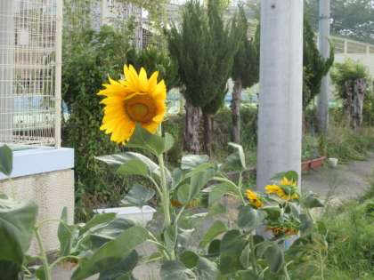 みんなのヒマワリが咲き乱れています。27日に見てほしいです。でも今週末の台風が心配です。