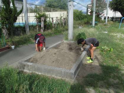 今日は近畿地方に近づいている台風が上陸する前に畑の仕事をしてくれました。今日は,雑草だけでなく暴風による被害を少なくするために風で倒れそうな植物は抜いておきました。花壇の被害が最小に抑えられることを願っています。