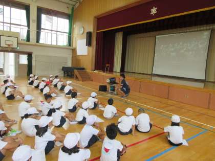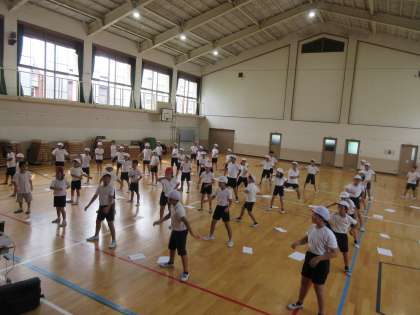 運動会の演技の練習が始まりました。3・4年生合同で活動に取り組みます。3年生より早く覚えて,引っ張っていけるよう練習に熱が入っています。