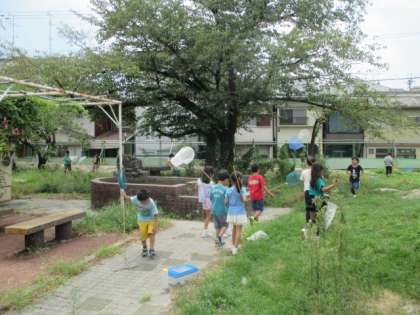 生活科の学習です。生き物探しをしました。人気はバッタです。大きなバッタをたくさんつかまえました。