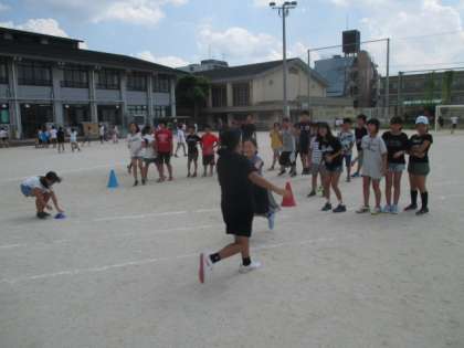 今日は5年生でリレーをロング昼休みに行いました。暑い中でしたが,楽しく笑顔でみんな走っていました。
