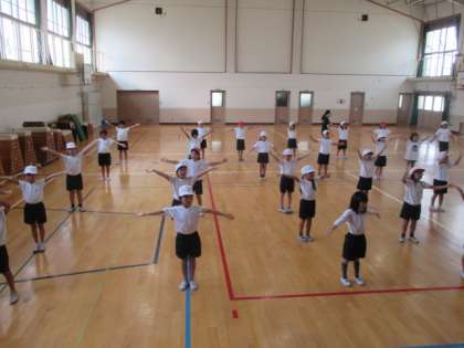 1年生と一緒にダンスをします。2年生は,やはり1年先輩です。ダンスをすぐに覚えます。これから,1年生にどんどん教えてくださいね。