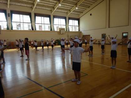 運動会の練習が始まっています。えのき学級の子どもたちも交流学年と一緒に練習を頑張っています。体育の時間だけではなく教室でも練習をしていて踊りがどんどんうまくなっています。