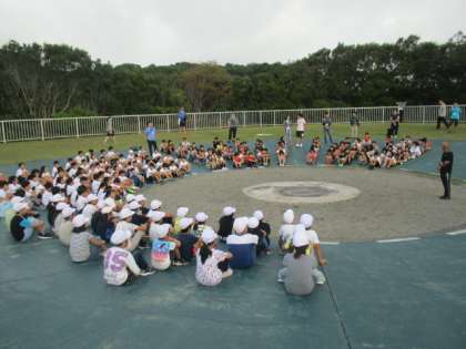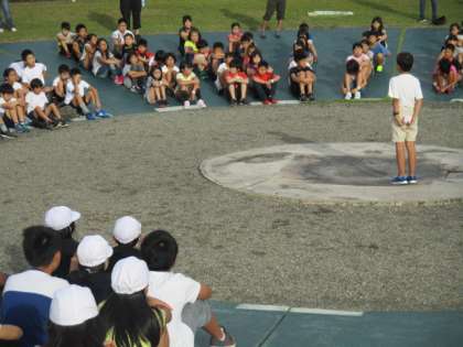 3校合同での朝のつどいでは、大きな声で校歌を歌い、代表の子が学校の紹介をしっかりしてくれました。