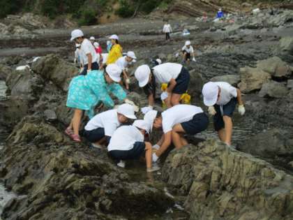 小さな魚やヤドカリはもちろん、ムラサキウニやアメフラシを見つける子もいました。