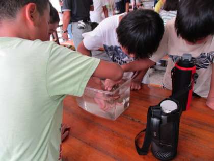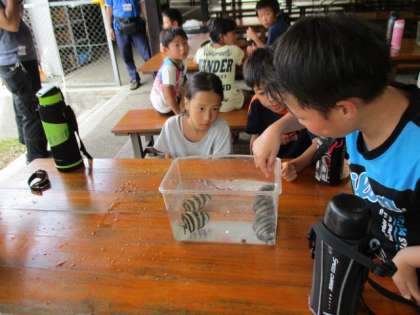 熱心に観察したり、ドキドキしながら触ったりしている子どもたちです。