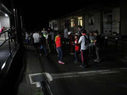 2日目最後のプログラムです。野外炊事後に強い雨が降り、心配されたのですが、8時前には満天の星空が広がりました。道が濡れているため、安全を考えてクラスみんなで行きました。それでも子どもたちは、ナイトハイクができたことに喜んでいました。