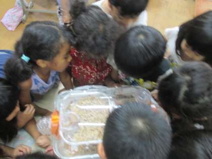 生活科の学習です。今日から1年生の教室にハムスターがやってきました。みんなでお世話をします。名前は,みんなで決めました。「ミルク」です。