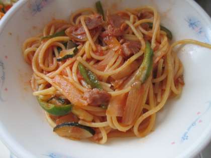 でした。イタリアンスパゲティには,夏野菜のズッキーニ・ピーマンが入っていました。ピーマンが苦手な子が多いかなと思いましたが,ピーマン好きなの!と報告してくれた子が何人もいました。おいしくいただけていたようです。