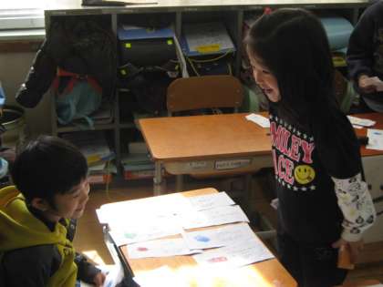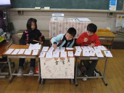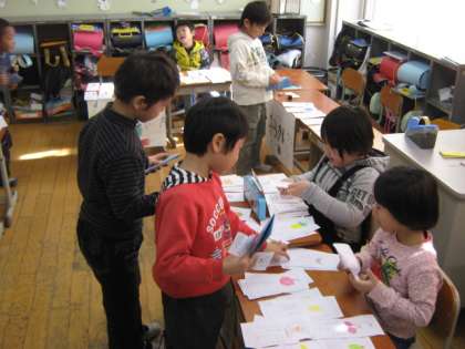 きょうの4じかん目のこくごの学しゅうではおみせやさんごっこをしました。「いらっしゃいませ」「ありがとうございました」とてもげん気なこえで、みんなたのしそうにしなものをかったり、うったりできました。