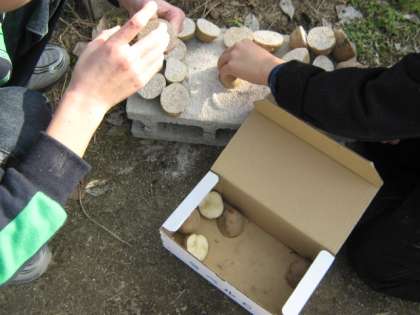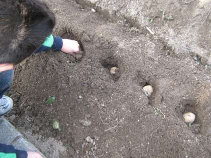 先週,雑草をぬいて石灰と化学肥料を混ぜて畑の土作りをしておきました。そして今日じゃがいものたねいもとラディッシュのたねをまきました。かぶで経験しているので見通しがもて収穫を期待して上手にまくことができました。ラディッシュは3月ころには収穫があります。じゃがいもは新年度始まって暖かくなったころが収穫です。楽しみですね。