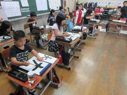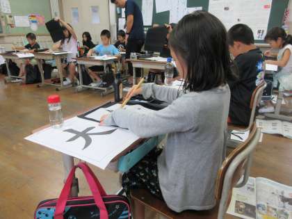 正しい筆の持ち方ができるようになってきたおかげで,しっかり力のこもった線が書けるようになってきました。ただ,力がこもりすぎてしまって,はらいが難しくなっているようです。適度な力の抜き具合をこれから学習していきます。