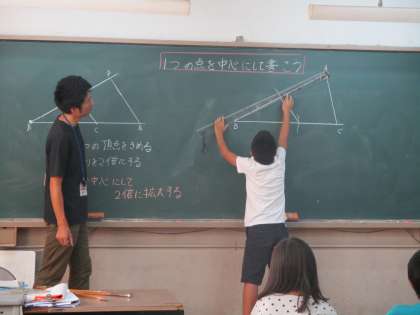 拡大図や縮図のかき方を練習しています。今までの学習の応用なので,自信をもって取り組むことができています。