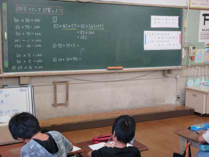 計算のきまりを利用して,計算しやすい方法を考えました。子ども達は「パズルみたい」「楽しい」と言いながら,どうすれば計算が簡単になるかを考えながら解くことができていました。