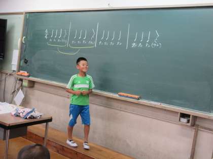 子ども達それぞれで考えたリズム楽譜をみんなで演奏しました。
