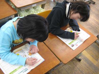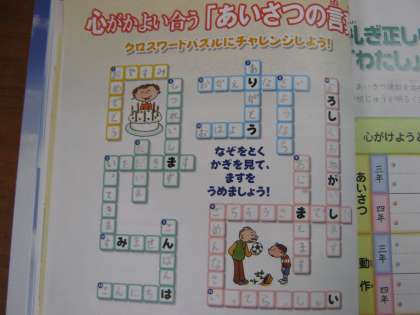 国語科の言葉遊びで学習しているクロスワードパズルの