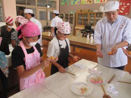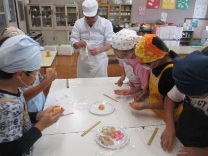 10月5日(金)に和菓子体験をしました。職人さんに来ていただき,本物の技術を学びました。