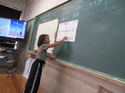 影の反対側に太陽があるということを利用して,太陽は東から南の空を通って西に沈むということを学びました。