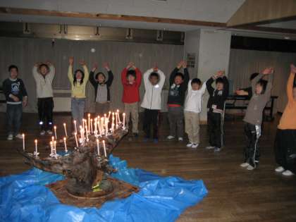 全員のキャンドルをまん中にともして,レクレーション係のゲームが始まりました。